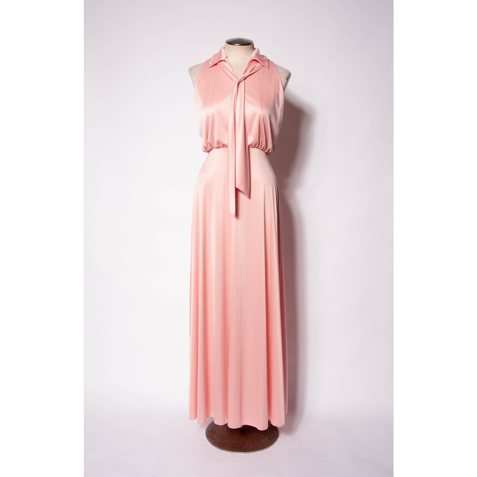 70s Maxi Dress Emma Domb Pink Jersey Party Dress Pastel Goth Bridesmaid SZ S/M